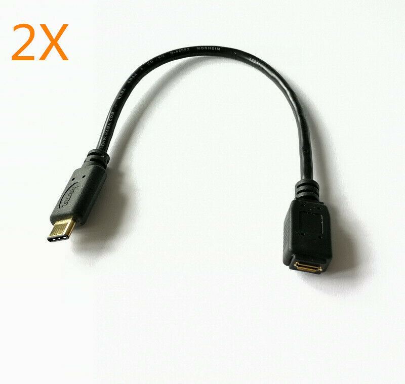 2 x Micro USB female to Type-C male Cable